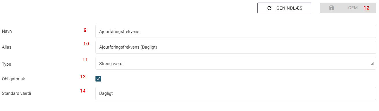 Her kan en standardværdi skrives ind, hvis denne er udfyldt vil det være