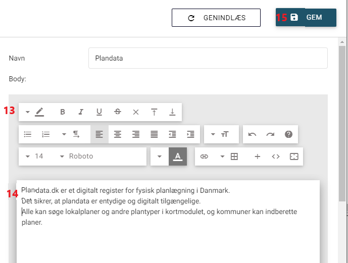 - Herefter kan frasen skrives i en teksteditor. (13) er værktøjer til at style teksten med